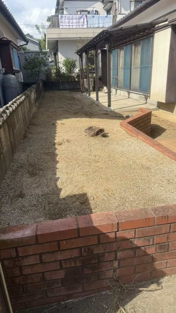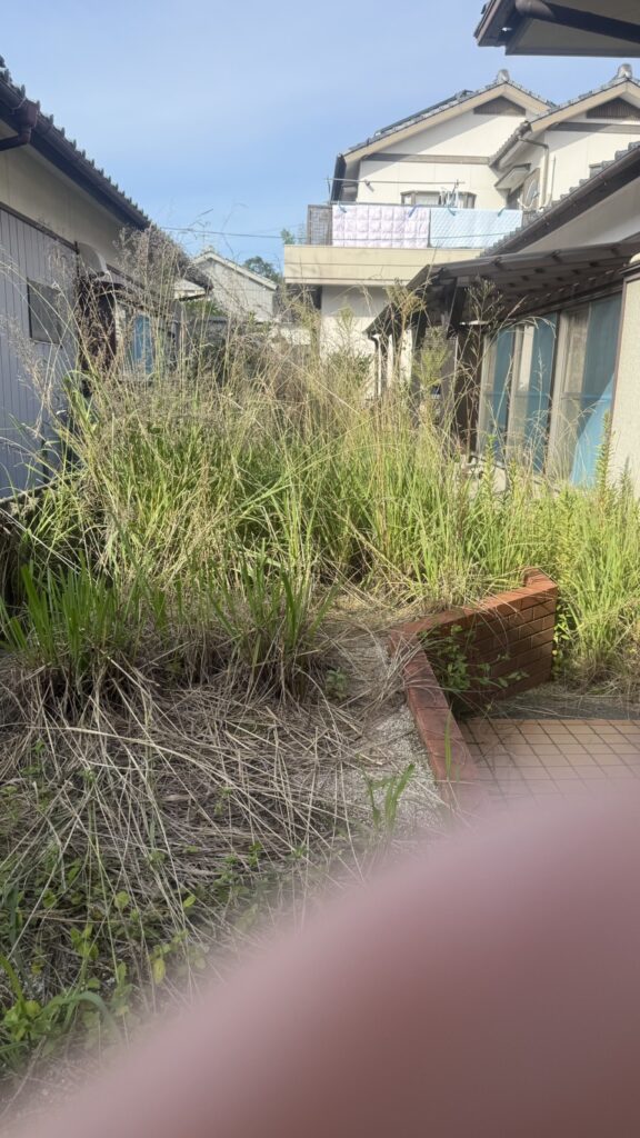 お家は売り物件のため綺麗にしたいという事での依頼です。庭に草なし君をしたのですが、施工後一年間位は効果があり生えなかったんですが、一年経ってこのようになったという事で悩んでらっしゃいました。