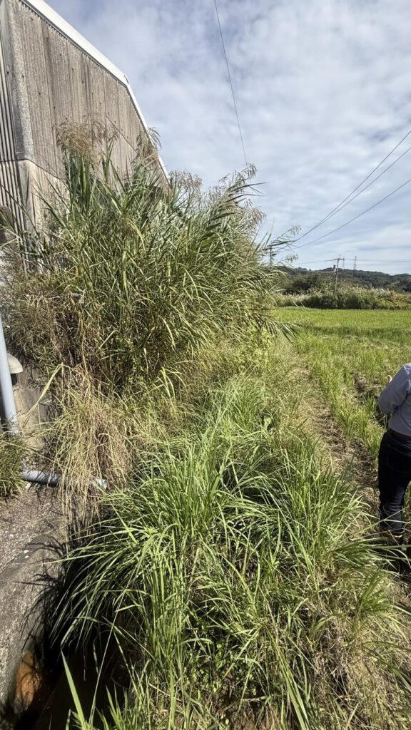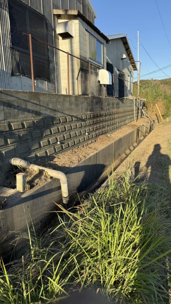 工場の修景を整えるための依頼でした。現場は竹林で手前に広い側溝があり少々困難で少し危険でしたが綺麗にしあがりました。