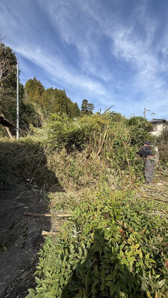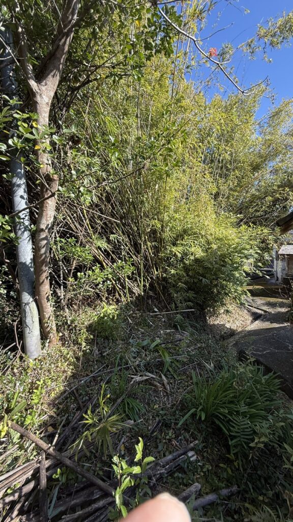 竹がおおいかぶさっており危険な隣家からクレームがあり、誰も請ける業者がいないのでお願いしますと依頼がありました。