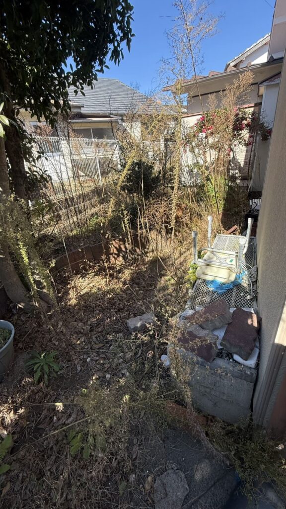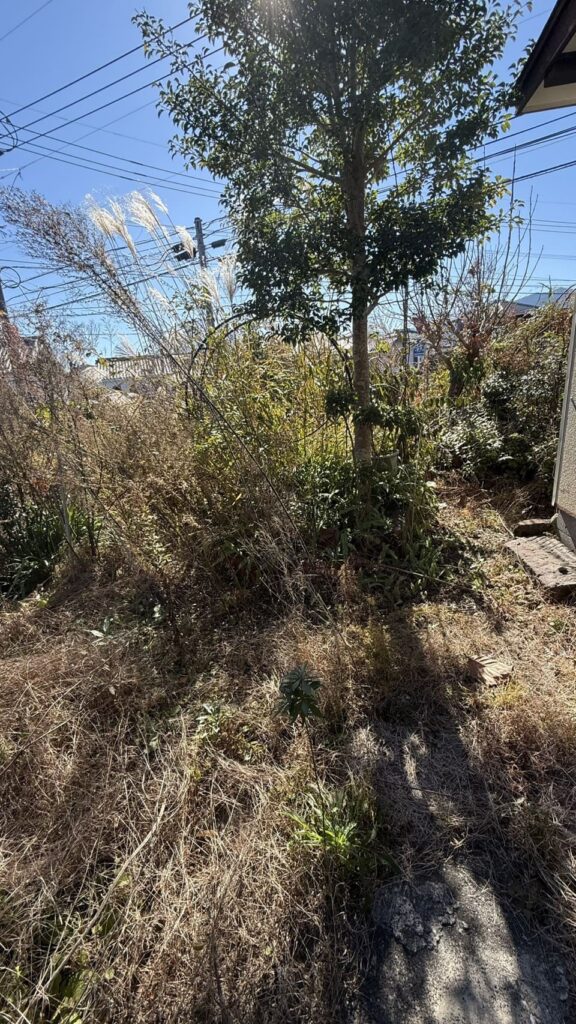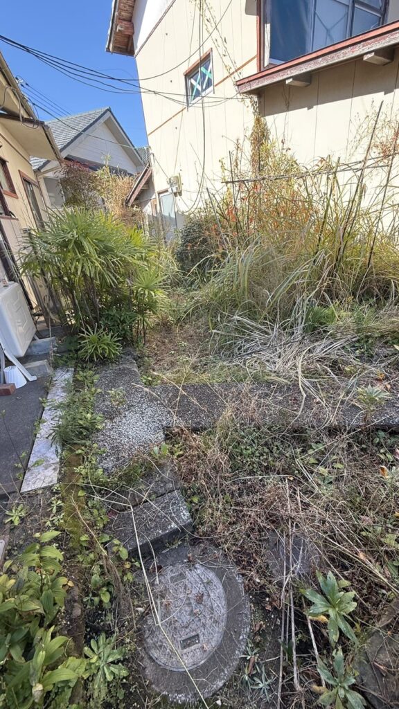 依頼者は東京在住の息子様で荒れ放題になってる実家の空き家のお庭を綺麗にして欲しいという依頼です。